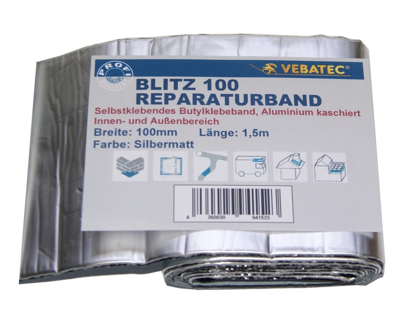 Vebatec Blitz Butyl Reparaturband Alu silbermatt 100mm / 1,5m
