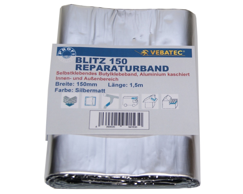 Vebatec Blitz Butyl Reparaturband Alu silbermatt 150mm / 1,5m